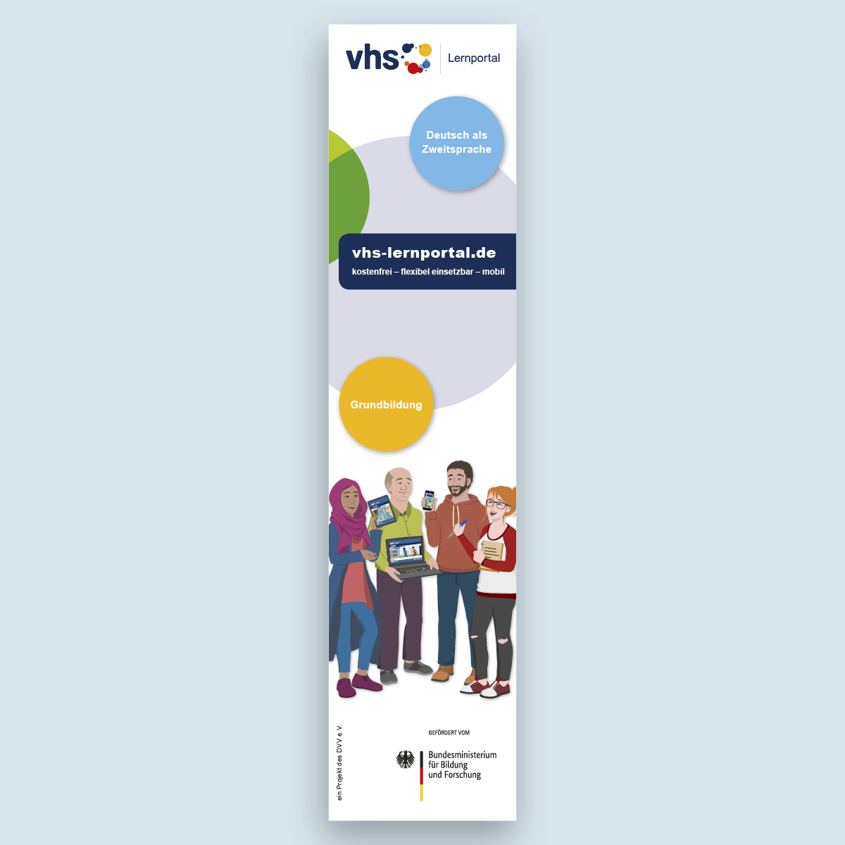 Hier finden Sie Anzeigen zum vhs-Lernportal in verschiedenen Formaten, optimiert für ein A4-Heft.