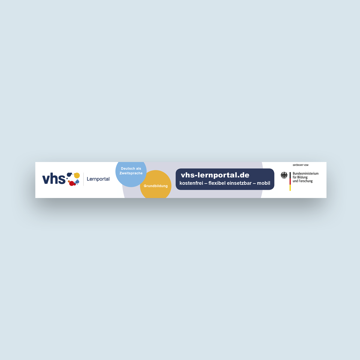 Hier finden Sie Banner zum vhs-Lernportal sowie zu einzelnen Kursen in drei Standard-Größen.