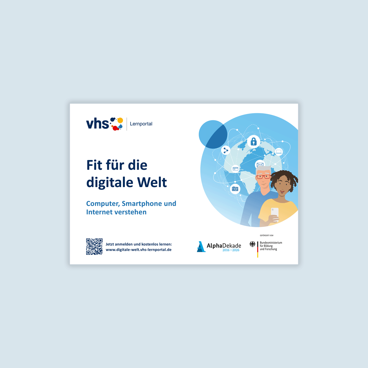 Hier können Sie Postkarten zum vhs-Lernportal als PDF herunterladen, zur Weitergabe per E-Mail und als Druckvorlage. Die Dateien sind für den Druck von DIN A6-Karten optimiert, die Sie beispielsweise bei Online-Druckereien in größerer Menge produzieren lassen können.