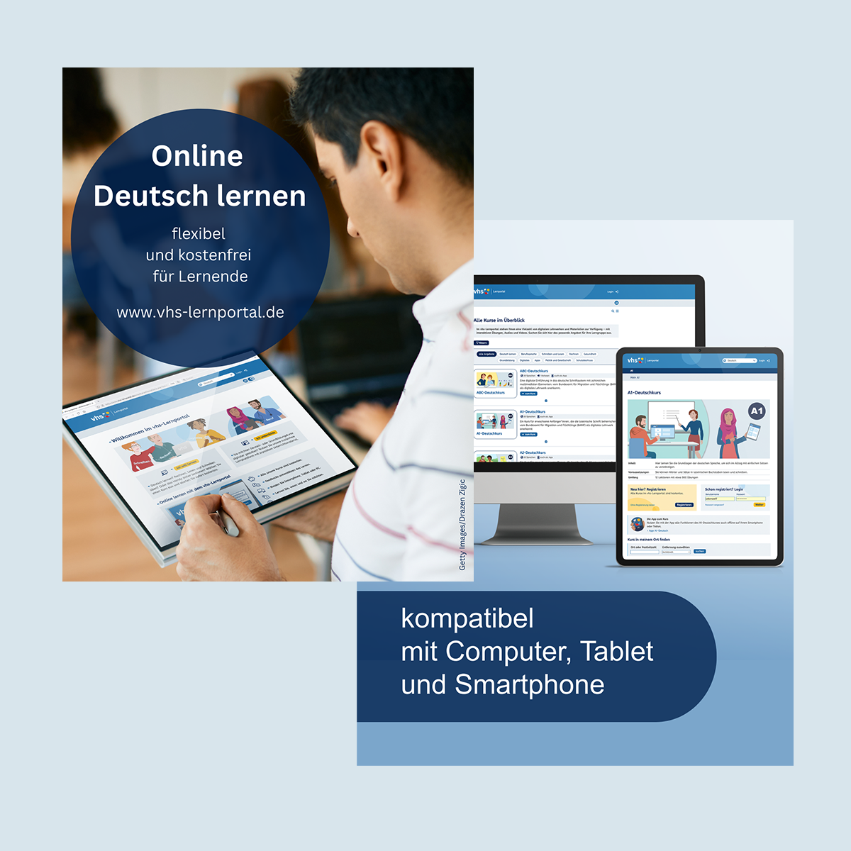 Infobroschüre "Deutsch lernen mit dem vhs-Lernportal"